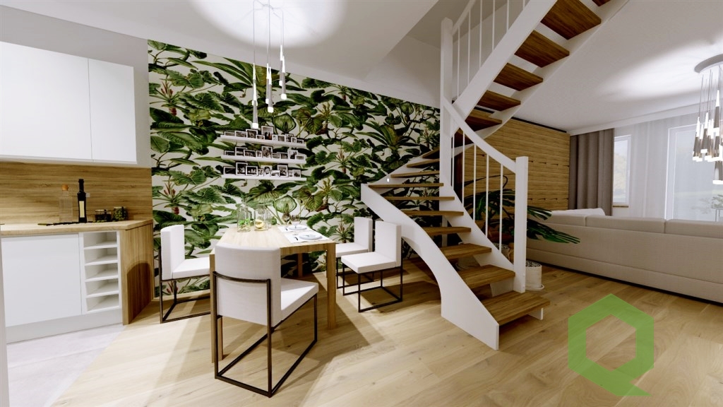 Dom posiada dwa komfortowe poziomy spełniające oczekiwania najbardziej wymagających osób, poszukujących wysokiego standardu wykończenia i przyjaznych warunków do życia. Odległość jedynie 3 km od granic Wrocławia gwarantuje szybki dojazd do wrocławskiego Ołtaszyna i wszystkich najważniejszych punktów handlowo – usługowych. Bliskość autostrady A4 i AOW/S8 pozwala szybko dotrzeć do każdej części Wrocławia i okolicznych miejscowości. Liczne tereny zielone, pobliska apteka, szpital oraz sklep Żabka i restauracja pozwolą na zaspokojenie wszystkich potrzeb dnia codziennego. Punkty rozrywkowe i większe sklepy zapewniają pobliskie Bielany Wrocławskie.