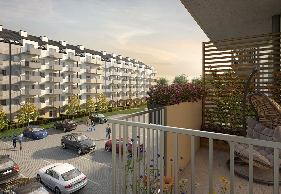 Do mieszkań zaprojektowanych na parterze przynależeć będą tarasy i urokliwe niewielkie ogródki, które pozwolą Lokatorom cieszyć się np. z porannej kawy na świeżym powietrzu. Wszystkie mieszkania na pozostałych kondygnacjach posiadać będą natomiast obszerne balkony.